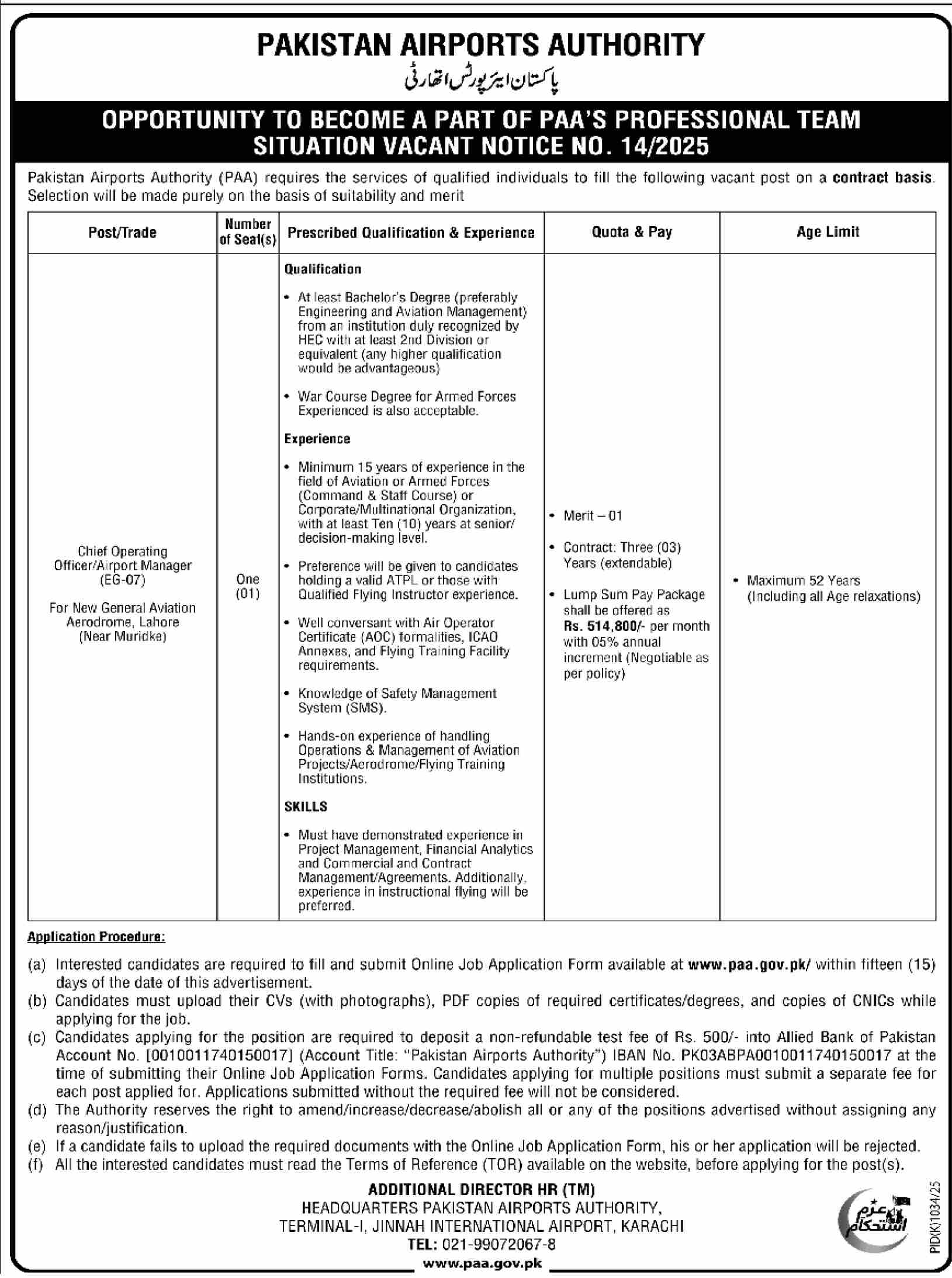 Apply now and start your journey with the Pakistan Airports Authority — your future starts here!
