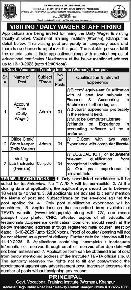Here are some of the Faisalabad jobs 2025 that are open now in TEVTA Faisalabad: